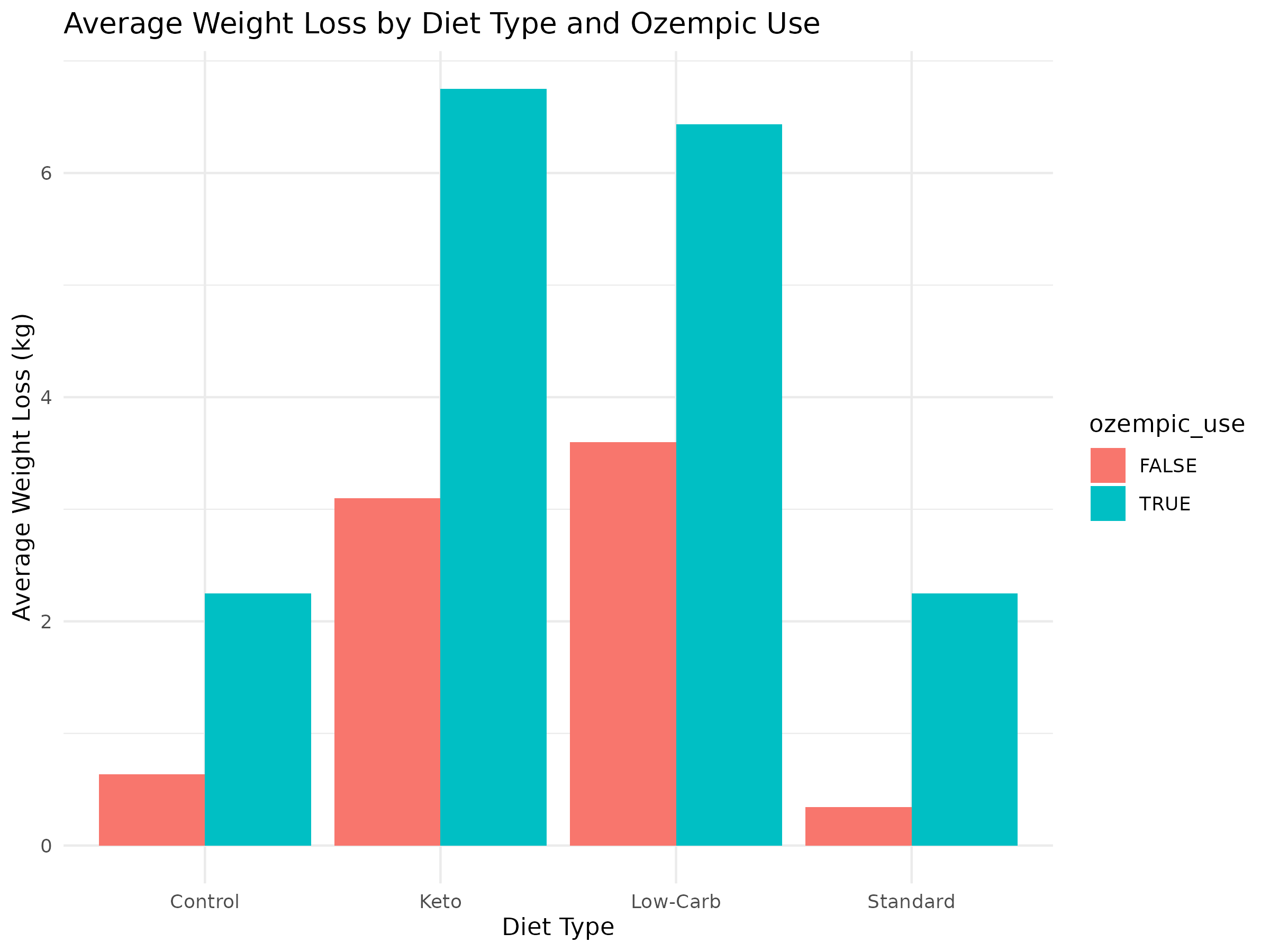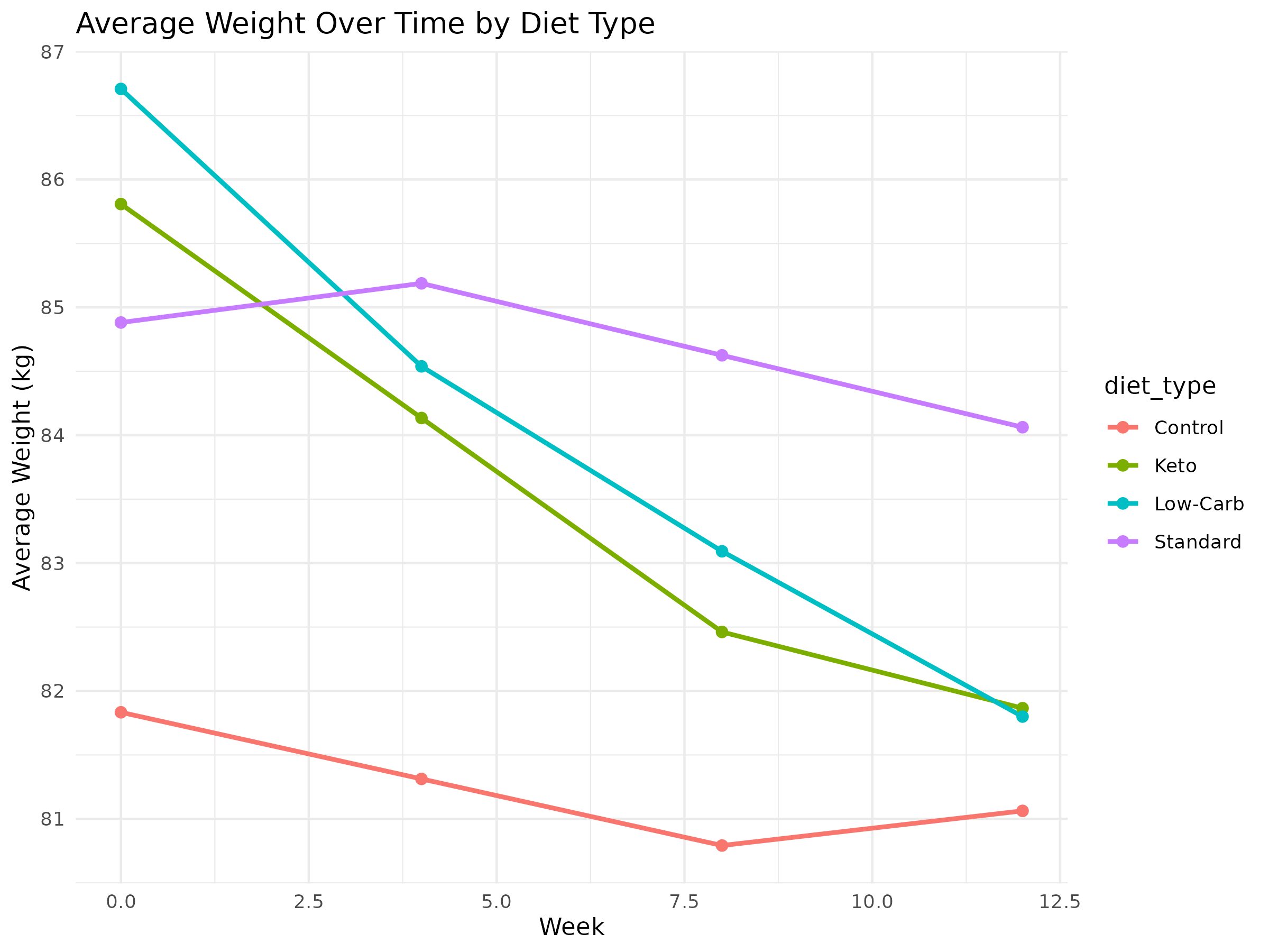 Analyzed the effects of four diet types (Keto, Low-Carb, Standard, Control) and Ozempic on weight loss, HOMA-IR, and fasting insulin over 12 weeks using R, SQL, and Tableau Public.